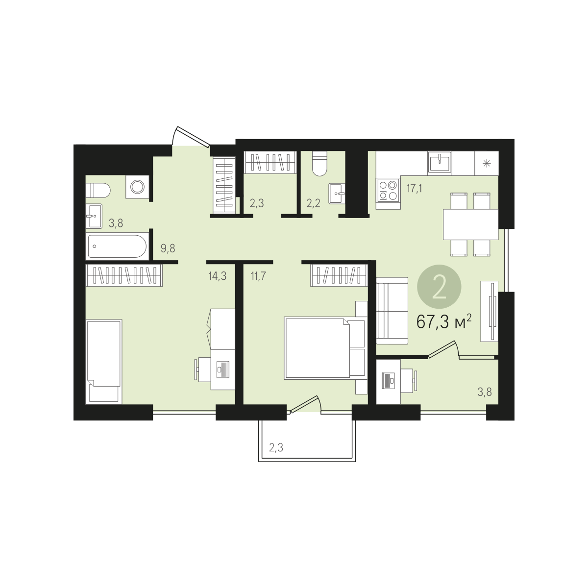 Февраль 2017 60-67 м2 3 900 000 - 4 800 000  ₽ ~68 504  ₽