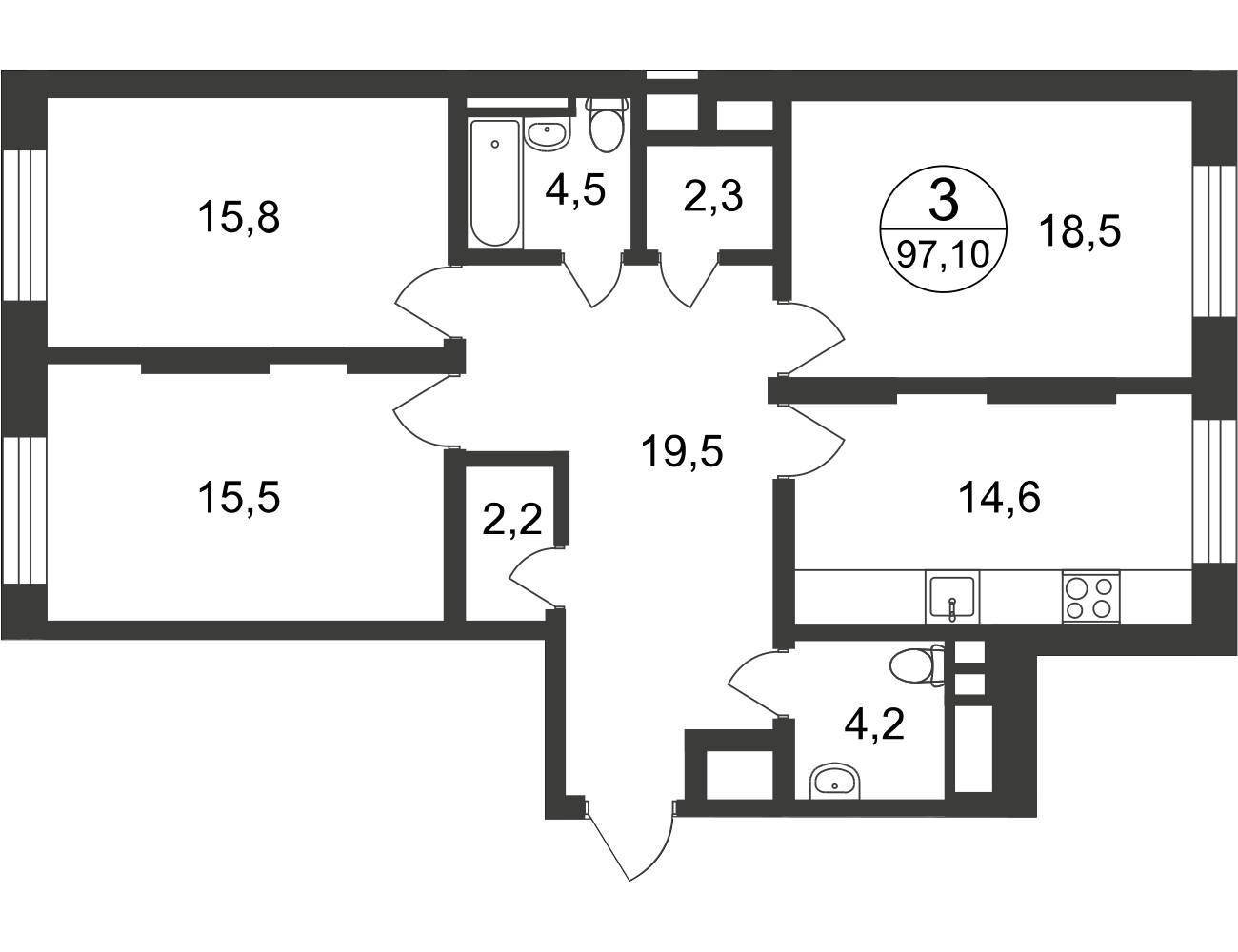 | Январь 2020 | 103,1-104,9 м2 | 13 414 421 - 14 225 121 ₽ | ~133 524 ₽ | 24.95% |