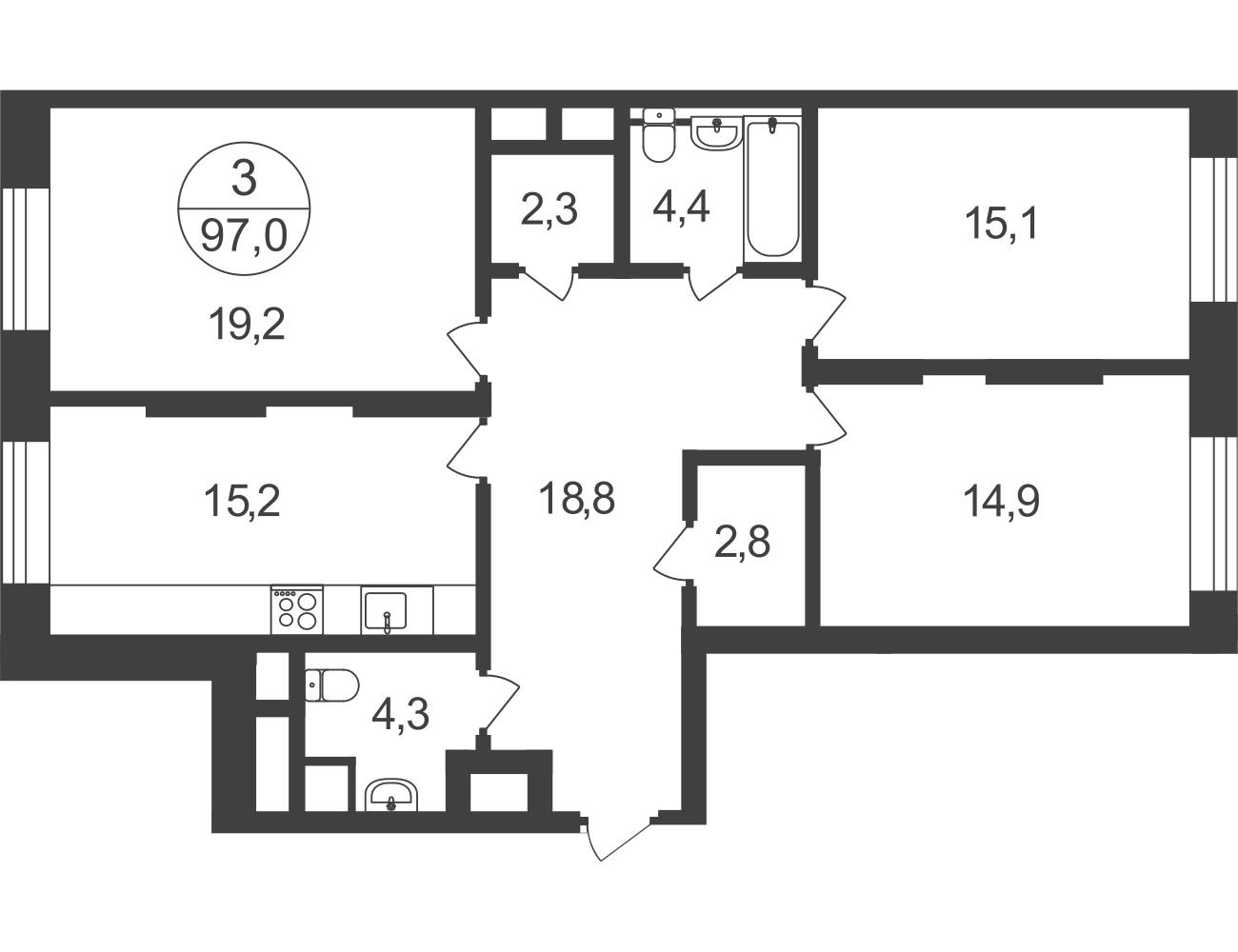 | Апрель 2019 | 73,8-97,1 м2 | 7 416 704 - 9 742 924 ₽ | ~100 939 ₽ | 10.7% |