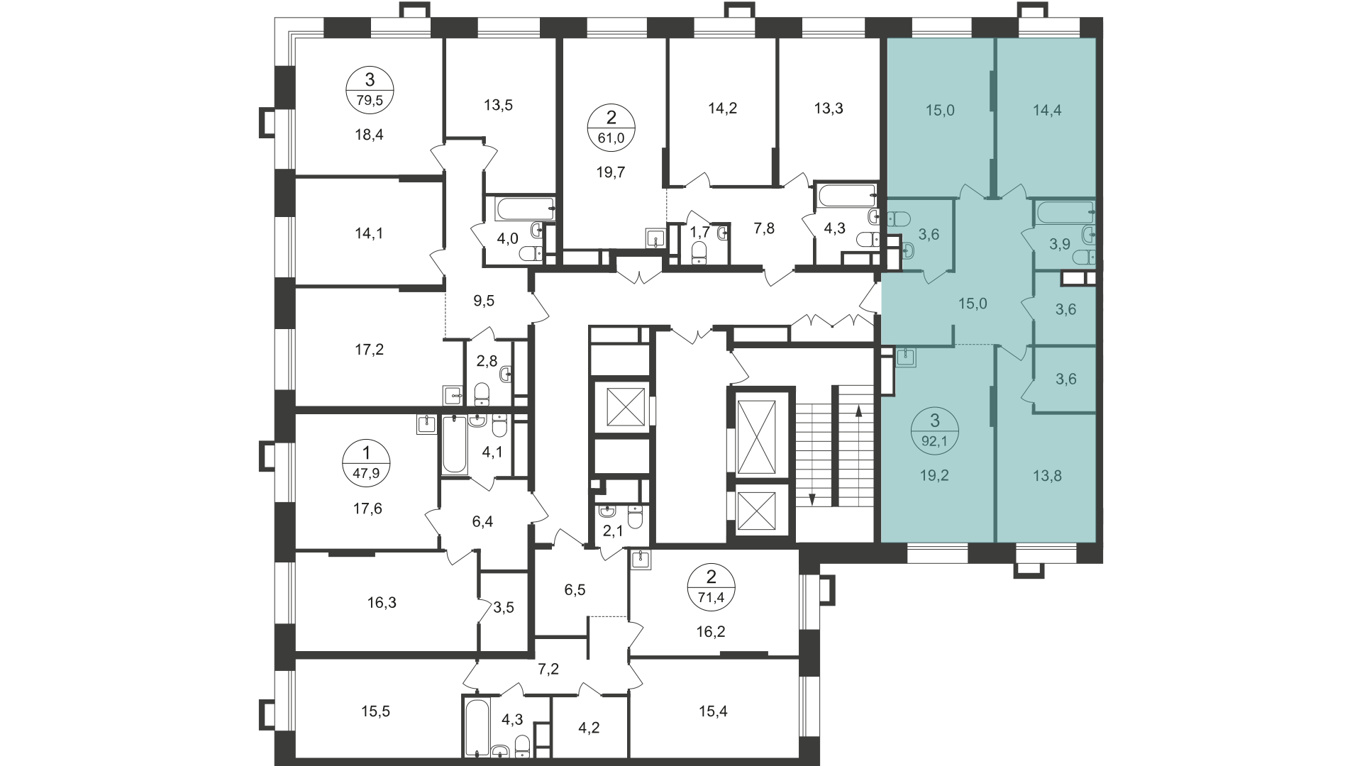 | Апрель 2019 | 73,8-97,1 м2 | 7 416 704 - 9 742 924 ₽ | ~100 939 ₽ | 10.7% |