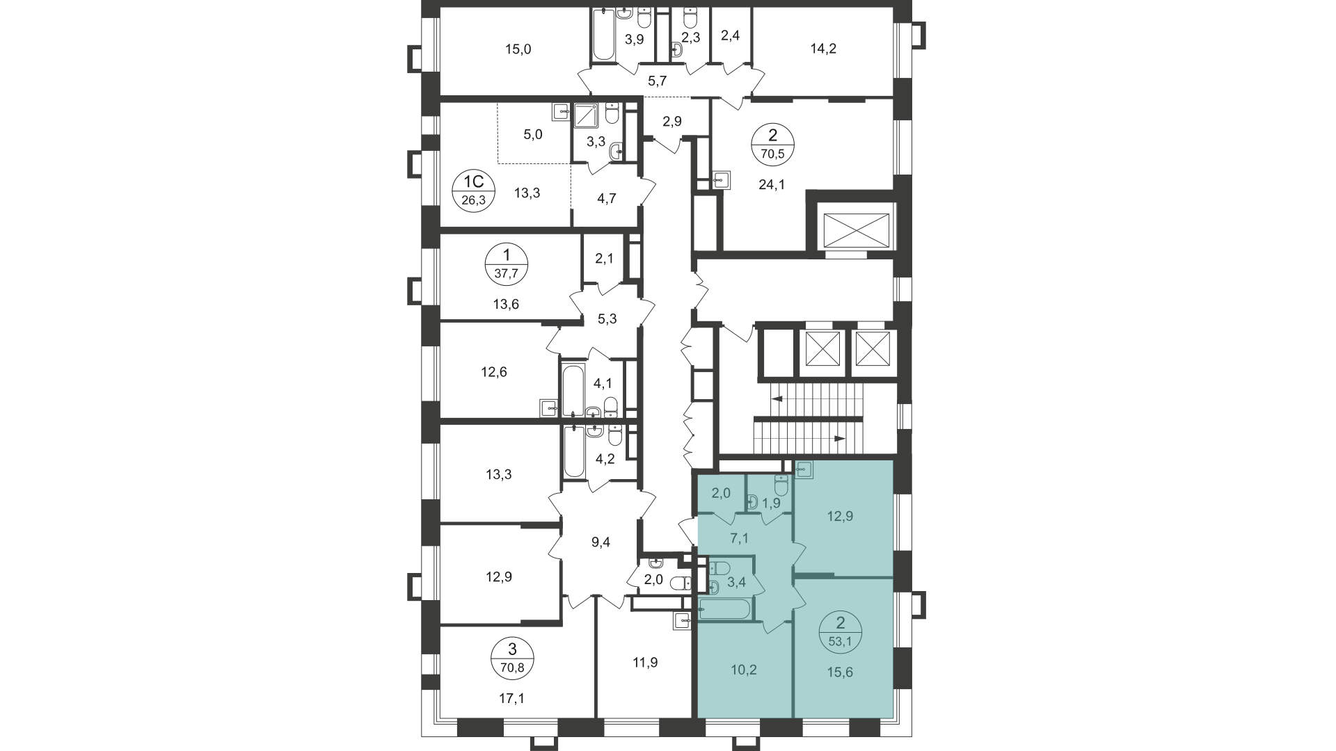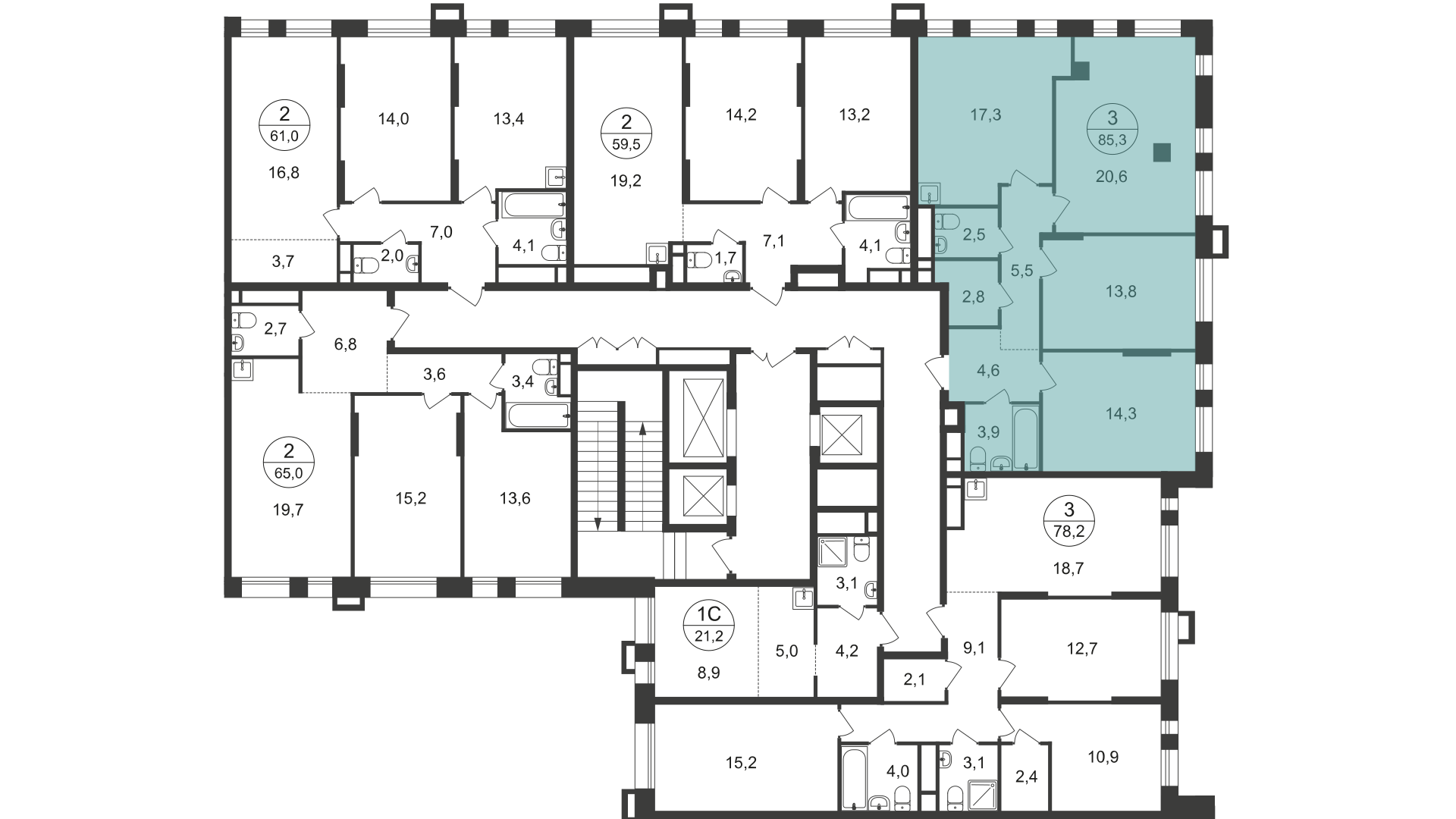 | Сентябрь 2022 | 53,1-78,8 м2 | 8 980 282 - 14 519 535 ₽ | ~179 388 ₽ | -12.65% |
