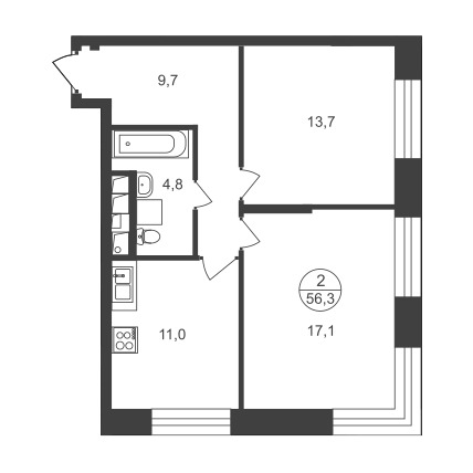 | Сентябрь 2017 | 30,5-48,5 м2 | 3 101 902 - 5 692 689 ₽ | ~112 751 ₽ | 4.46% |