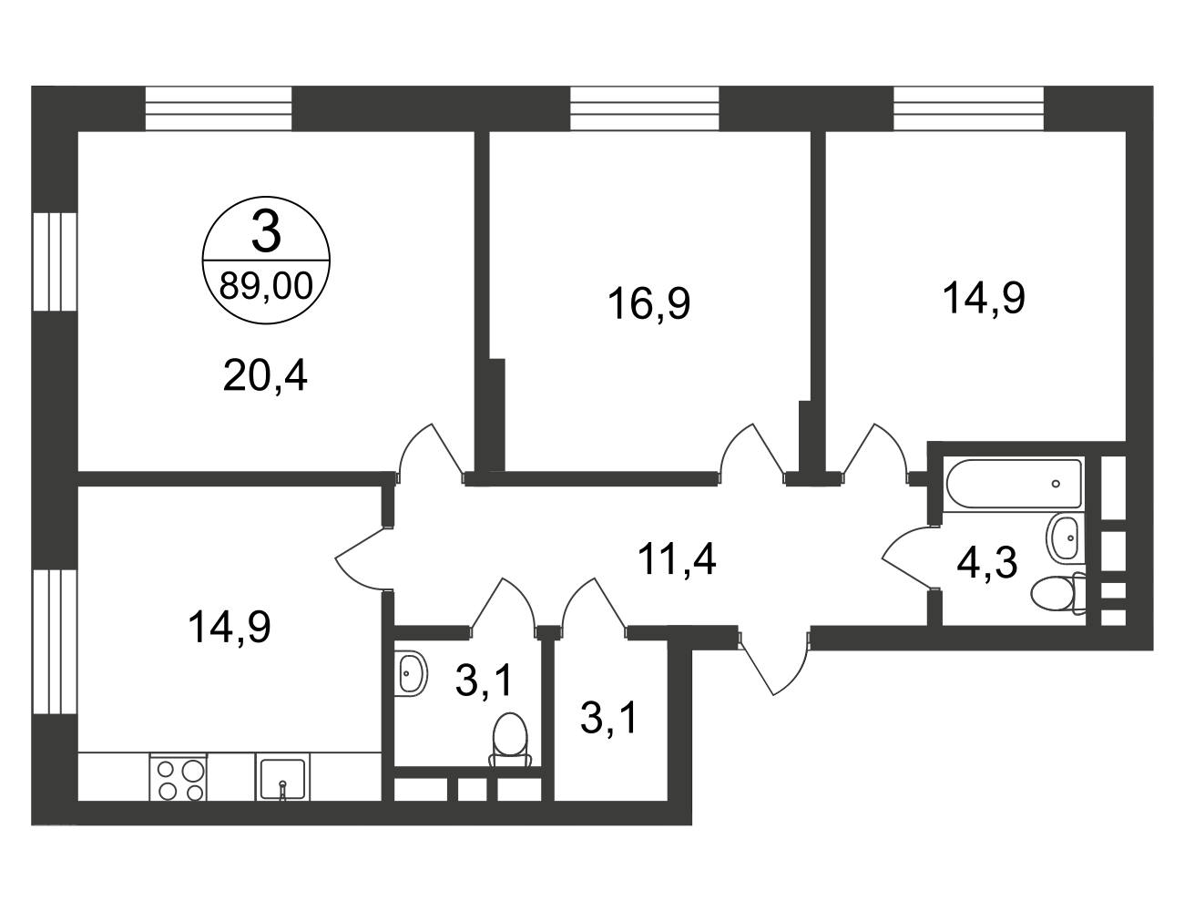 | Январь 2020 | 103,1-104,9 м2 | 13 414 421 - 14 225 121 ₽ | ~133 524 ₽ | 24.95% |