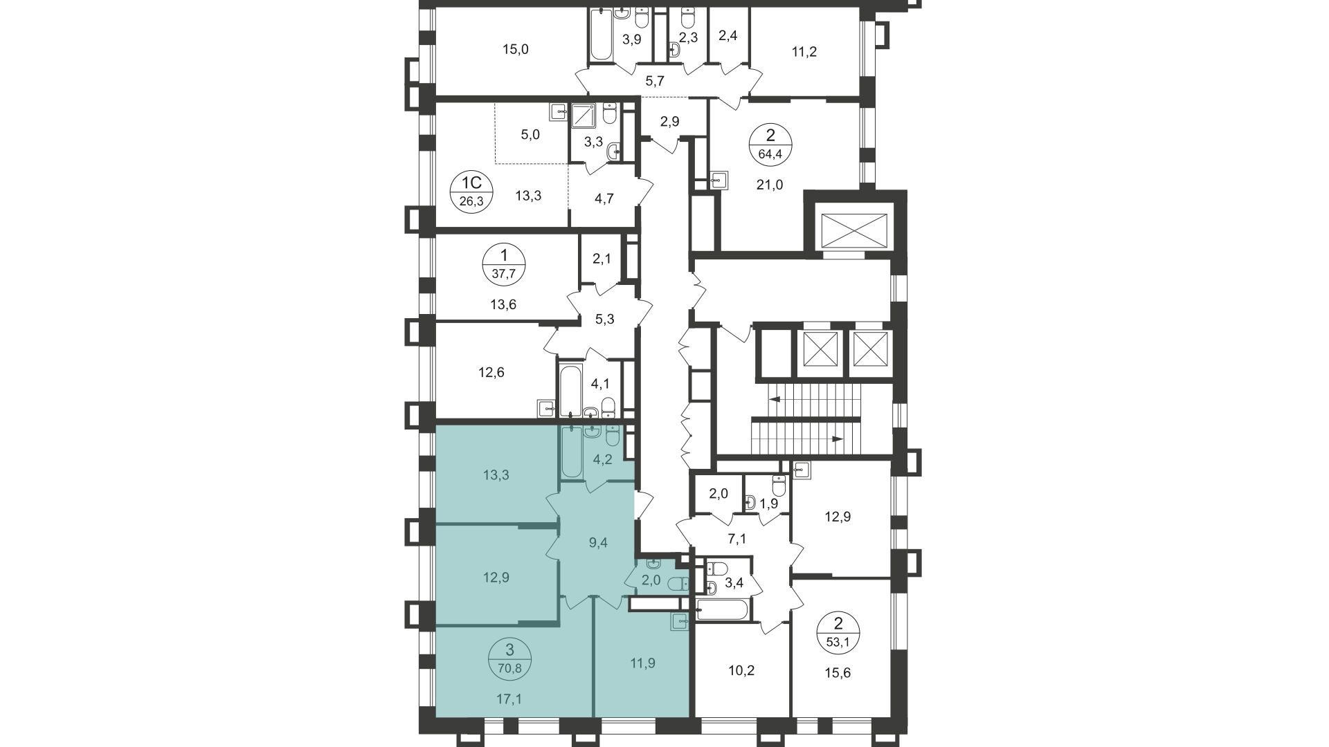 | Апрель 2019 | 73,8-97,1 м2 | 7 416 704 - 9 742 924 ₽ | ~100 939 ₽ | 10.7% |