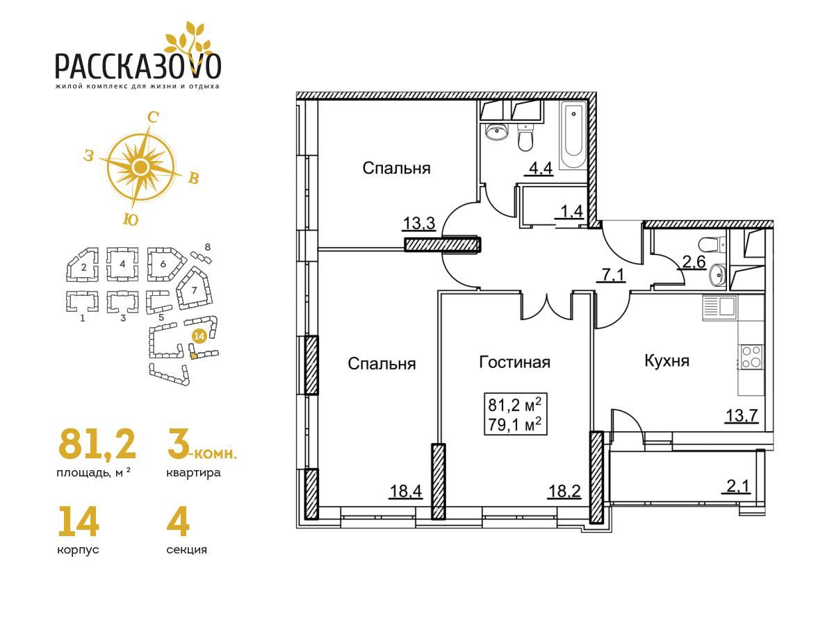 Июль 2019 78,2-108,6 м2 9 667 800 - 15 000 375  ₽ ~132 625  ₽  9.64%