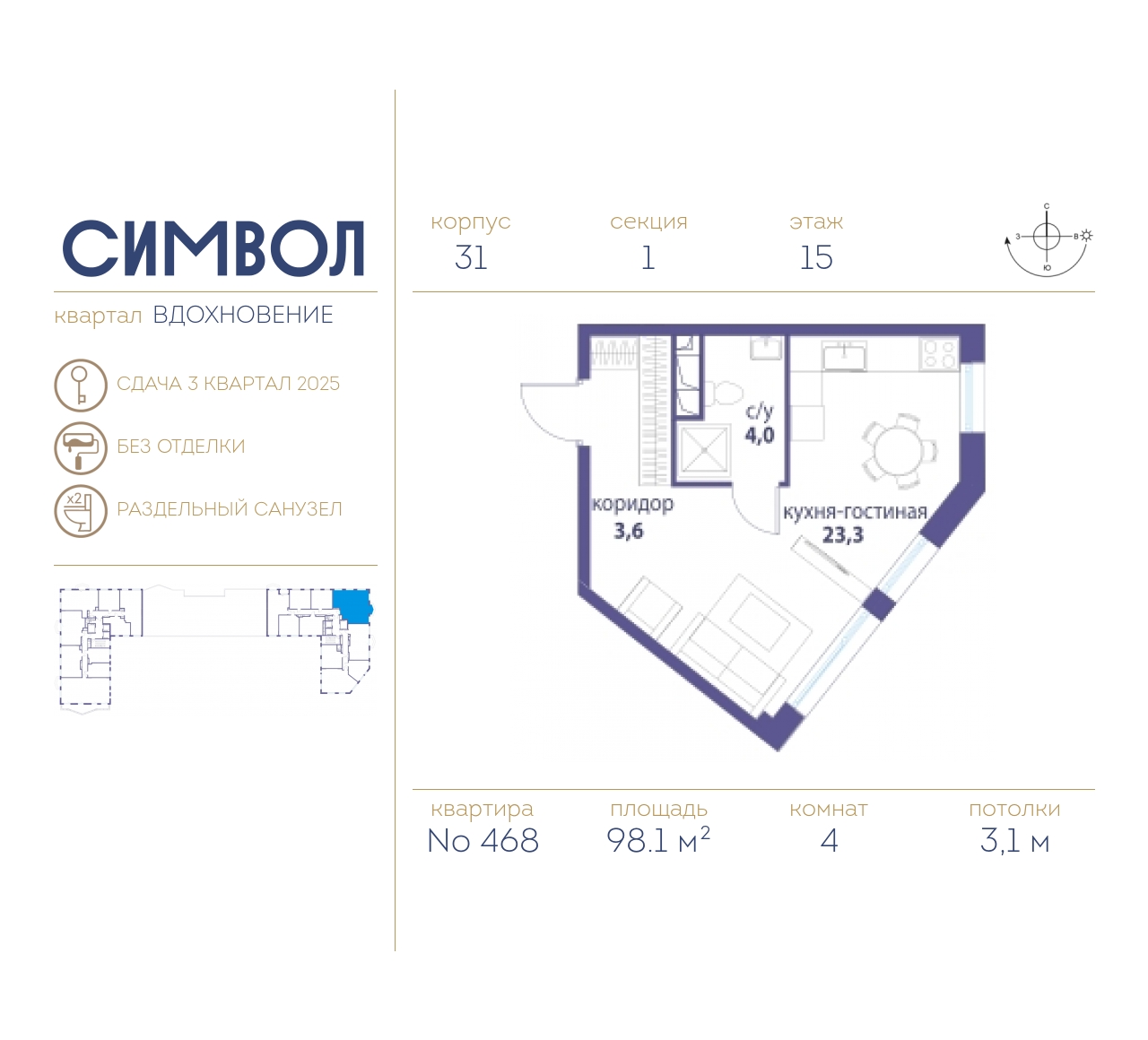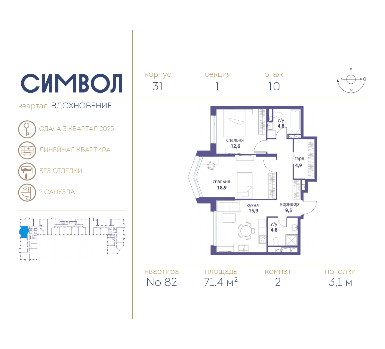 Март 2024 77.8-81.9 м2 21 458 485 - 31 588 830  ₽ ~332 169  ₽  -3.4%