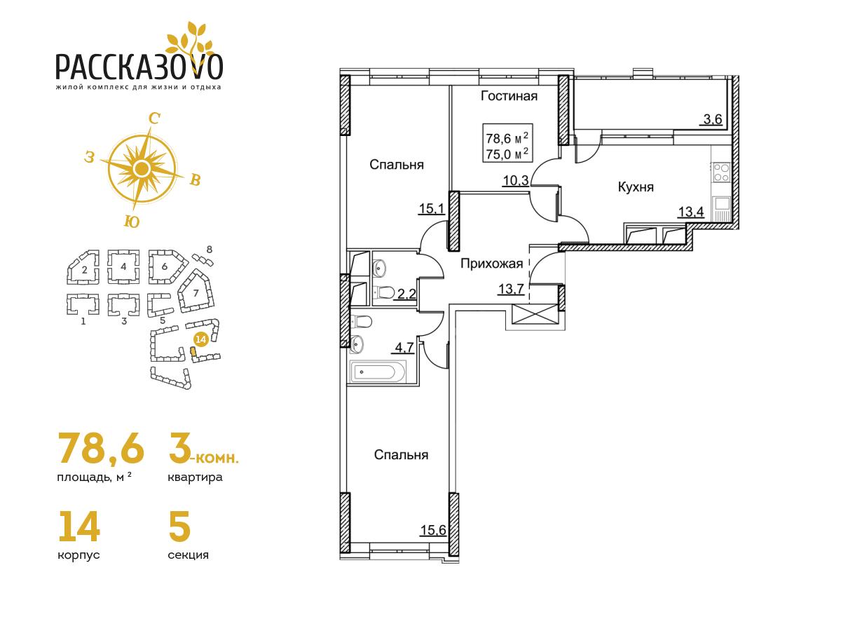 Трёхкомнатные – от 9 600 000 рублей.