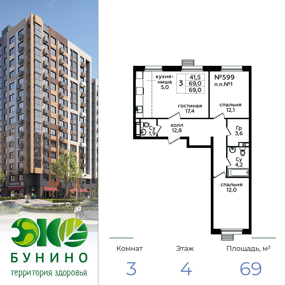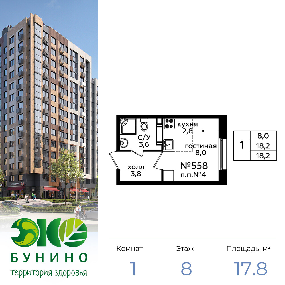Алия Сорокина: Наш комплекс ЖК «Южное Бунино» находится в районе Калужского шоссе. Комплекс состоит из 19 корпусов переменной этажности 10–14. В комплексе три садика, две школы, все они муниципальные. Мы их строим и отдаем Москве. Сейчас в продаже четыре дома класса комфорт с большим рядом планировочных решений. У нас четыре очереди. Первая очередь, о которой я вам сейчас сказала. Срок ввода в эксплуатацию 4-й квартал 2019 года. По договору долевого участия выдача ключей в течение двух месяцев после ввода в эксплуатацию.