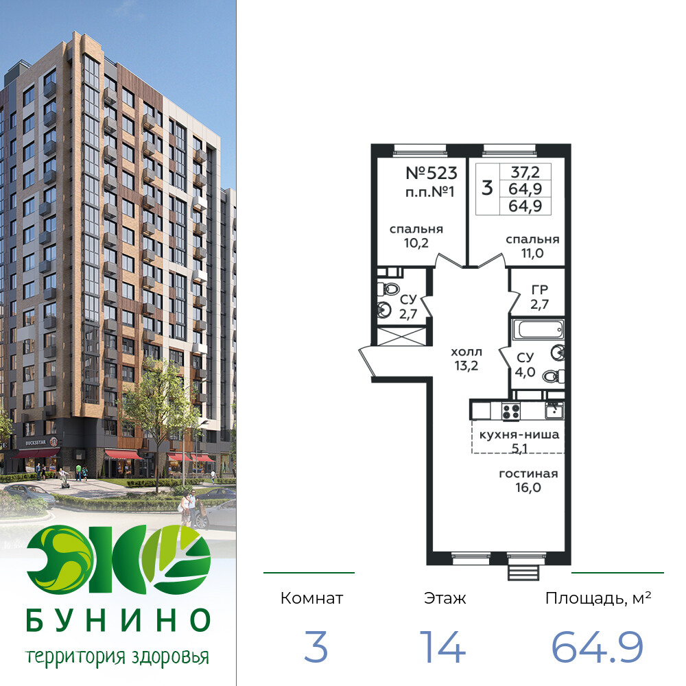 Алия Сорокина: Наш комплекс ЖК «Южное Бунино» находится в районе Калужского шоссе. Комплекс состоит из 19 корпусов переменной этажности 10–14. В комплексе три садика, две школы, все они муниципальные. Мы их строим и отдаем Москве. Сейчас в продаже четыре дома класса комфорт с большим рядом планировочных решений. У нас четыре очереди. Первая очередь, о которой я вам сейчас сказала. Срок ввода в эксплуатацию 4-й квартал 2019 года. По договору долевого участия выдача ключей в течение двух месяцев после ввода в эксплуатацию.